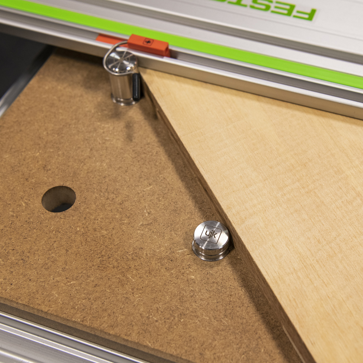 - Supplied with the unique chafer ring, this feature ensures the dog sits in the hole and provides a register ensuring the dog sits exactly at 90° to the work surface when locked in place, whilst still allowing for a flush fit, the chamfer ring also stops the dog falling through the hole before it's adjusted.