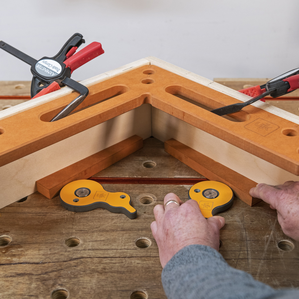 Use with UJK Super Dogs, a guide rail, and a track saw for flawless 45° and 90° cuts. Create tighter grids with 32mm or 46mm spacing for endless cutting, assembling, and clamping options.