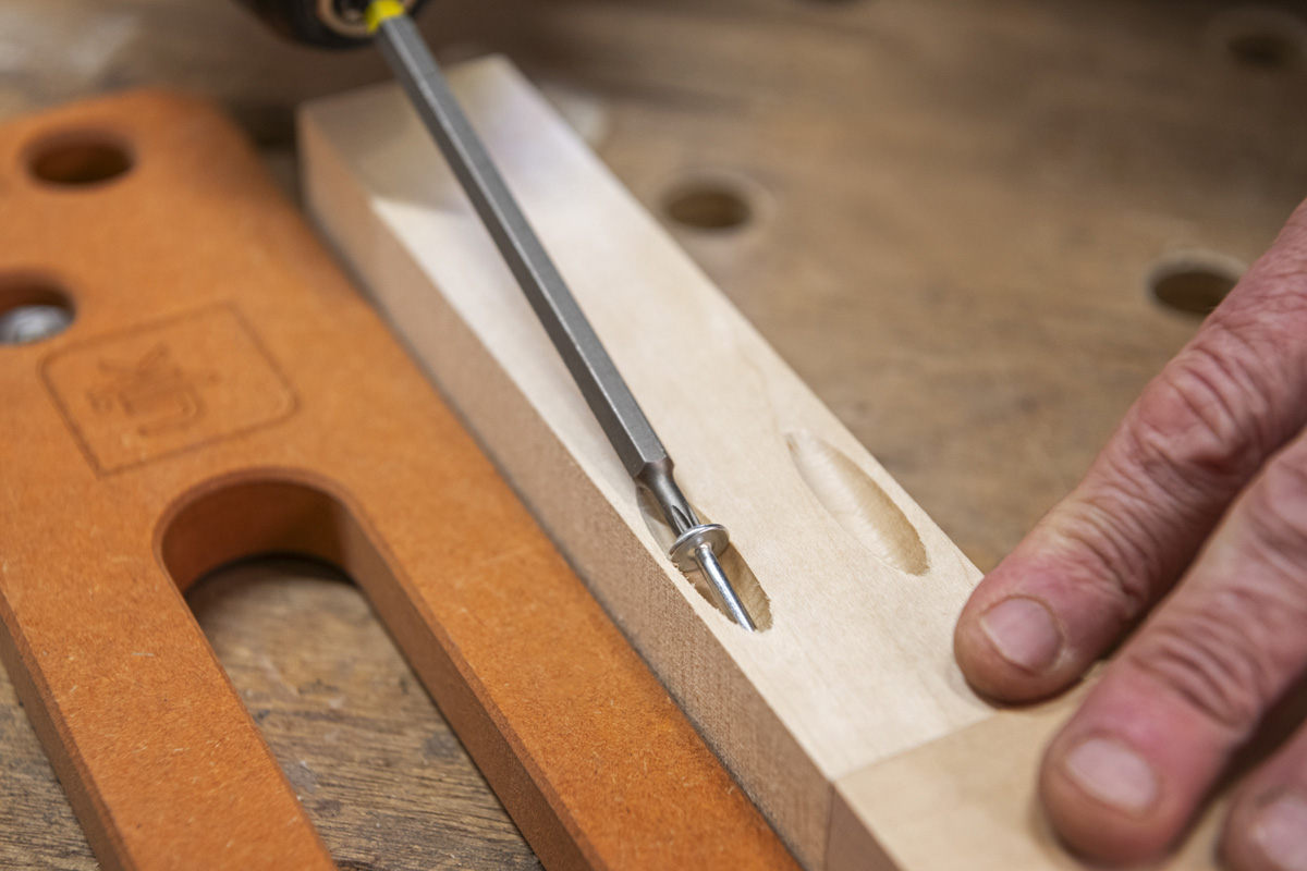 • Pocket Hole Drill with interchangeable pilot drill tips