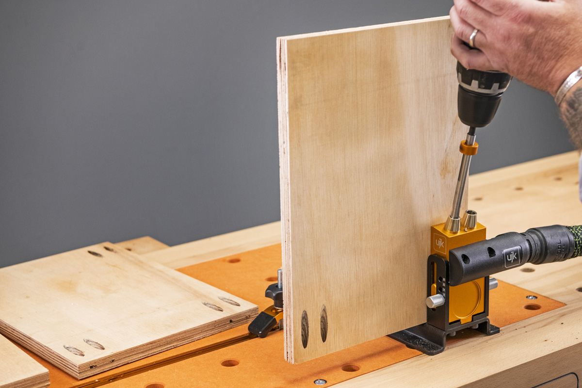 The UJK Pocket Hole Jig Mk II is your solution for creating robust, concealed joints with speed and accuracy. Now featuring redesigned drill bushes, its fully compatible with the advanced UJK Pocket Hole Drill Complete Package, offering interchangeable pilot tips for unmatched versatility, from quick changes drill tips or if a drill tip ever snaps, you can simply replace it without needing to buy a new drill. The upgraded bushes are manufactured fromAluminium Bronze Alloy, an exceptionally strong and highly resistant to wear and corrosion, offering durability comparable to medium carbon steel.