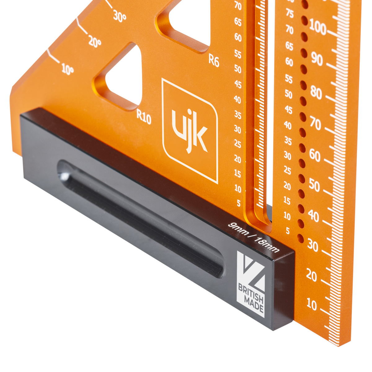 - British-made from high-grade aluminium with a >15-micron anodised finish, it’s built to stay accurate and built to last. Mark 90° and 45° instantly, or swing smoothly from 10° to 90° using the precision pivot.