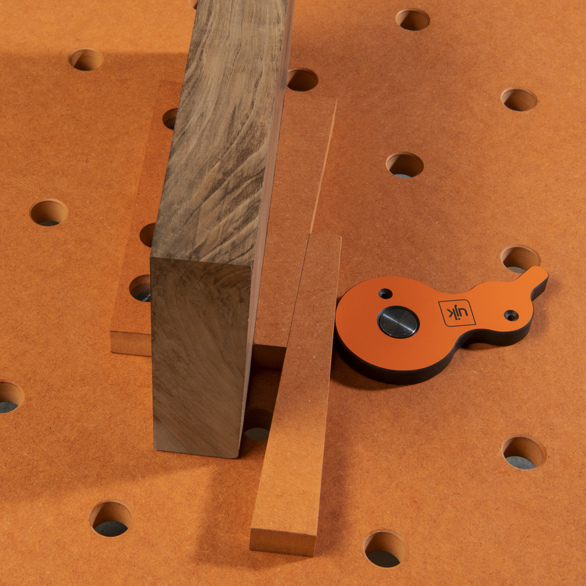 - Designed originally for use on a multifunction table with 20mm dog holes, there is no reason why you cannot use them on any bench with the correct size dog hole. The UJK Guide Pups with their low profile are the ideal companions. The design of these cam clamps solves the problem of holding an item on a flat surface using only side pressure.