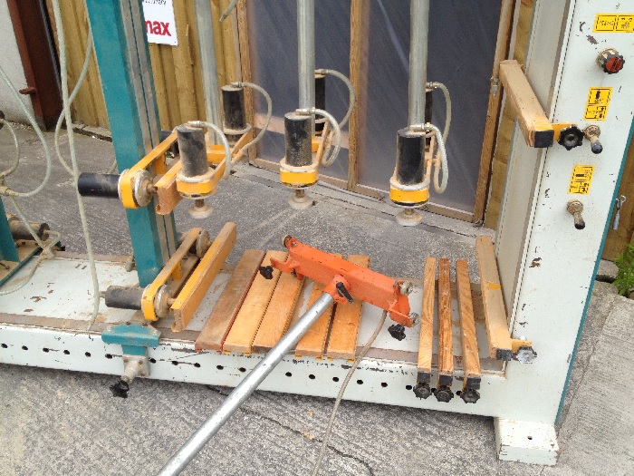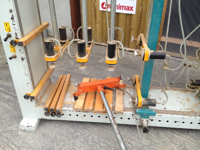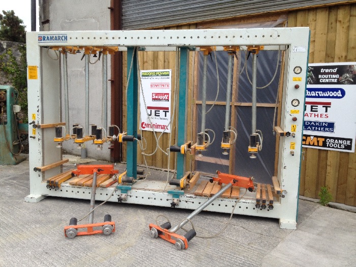 Ramarch PN-20 Cabinet Carcase Press the industry standard for all kitchen carcase and furniture manufacturers who require square cabinet carcase assembly each and every time. Adjustable air pressure to rams to suit the strength of each cabinet and multi adjustable ram positions to suit internal divisions within cabinets as well as cabinets of differing heights This press has 2 work stations so that one cabinet can be assembled and curing whilst the other station is being assembled ready for clamping This press operates on air only so no electrical connection is necessary Overall dimensions 3500 x 2200 x 600mm (138" x 87" x 24")