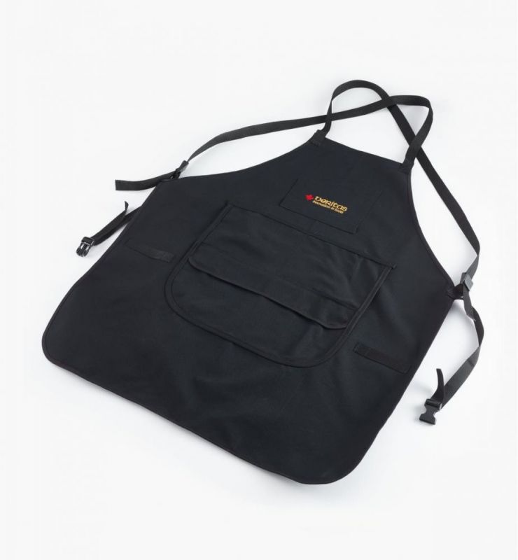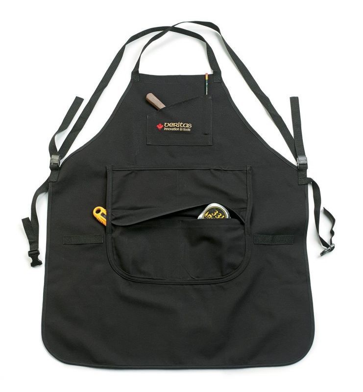 - At 863mm(34") long and 710mm(28") wide, the bib provides ample front and side coverage. The shoulder straps are easy to adjust with low-profile, unobtrusive clips, and the adjustable waistband has a quick-release buckle. A pocket on the chest has compartments for pencils, pads, small rules, etc. Below it there are two 200 x 200mm(8") pockets with a top flap that keeps sawdust and wood chips out, plus two larger 355mm(14") x 200mm(8") side-opening pockets to hold small tools or just provide a comfortable resting place for hands. The wide openings on these pockets permit easy access and the rounded inside corners won’t trap small objects.