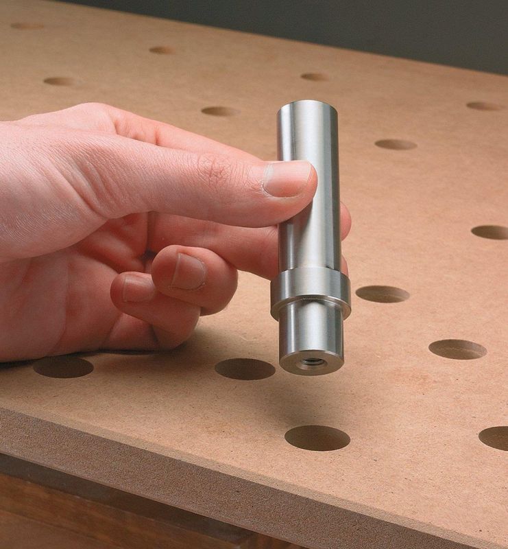 - Machined from stainless steel, each dog has a post that fits into the 20mm holes of the MFT/3 table top. Each size of dog is supported on the surface of the bench by a thicker boss or collar, 25mm in diameter and 10mm high, which provides a good bearing surface and stability in use.