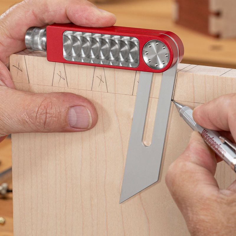 - Whether you’re marking dovetails, taking off an angle from an antique, or transferring an angle from a plan, you want a bevel gauge that adjusts easily, locks firmly and won’t move again until you want it to. Woodpeckers Sliding Bevel Gauges feature a unique locking mechanism that delivers precisely adjustable drag and positive locking from the end of the tool. The locking knob fits naturally between your thumb and finger and provides positive feedback for tension adjustment. Internally, a wedge multiplies your effort, exerting firm gripping pressure on the blade with only moderate finger pressure.