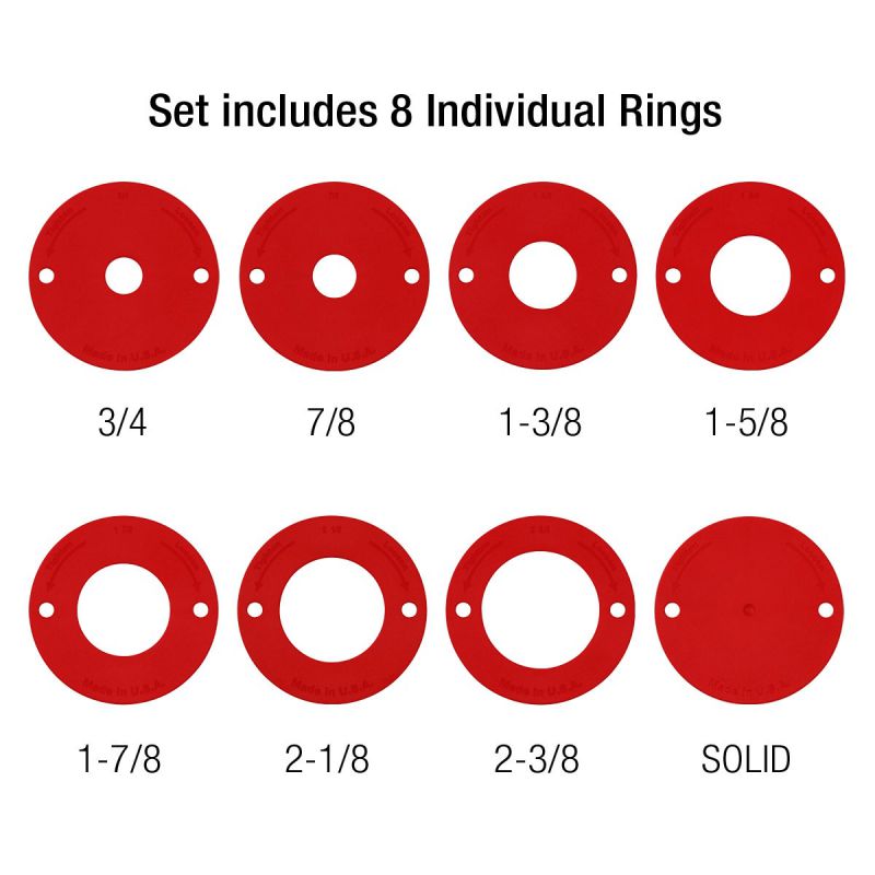 - This set of eight is in addition to the standard three rings supplied with each Woodpeckers Router Mounting Plate and Router Lift.