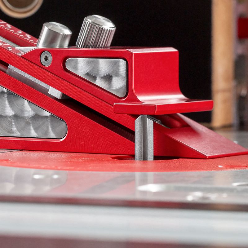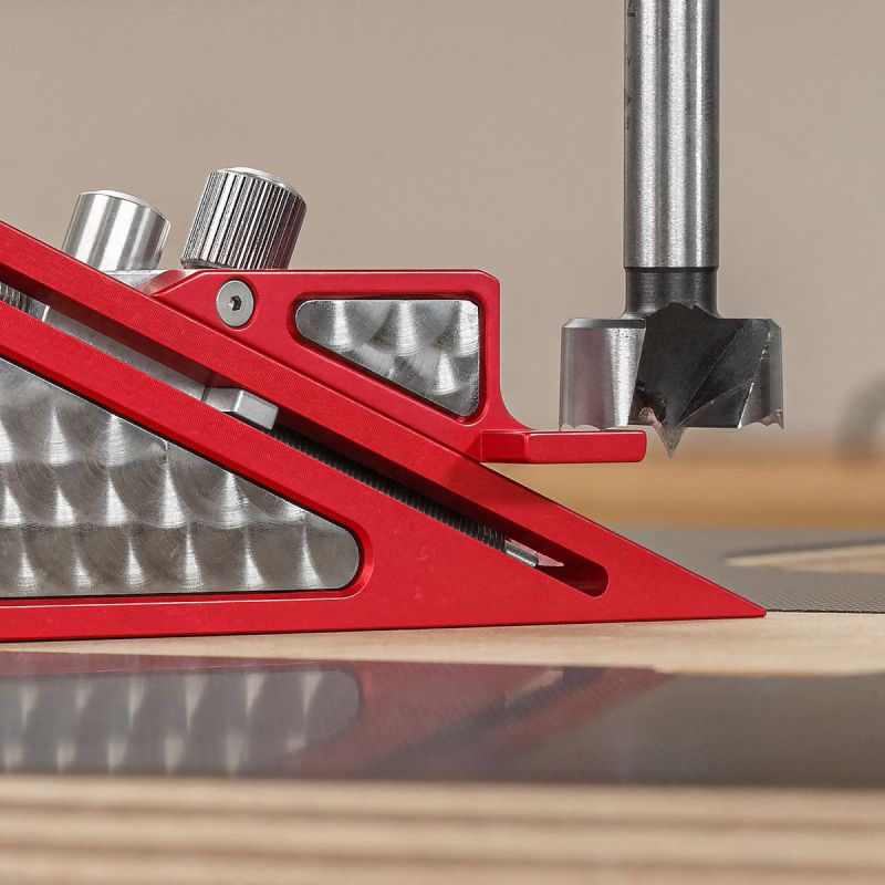 - An Attractive Tool with Quality You Can Feel The triangular base and reference plate are meticulously machined from a solid billet of aluminum, then anodized with our famous “Woodpeckers Red” finish. Stainless-steel inlays with an old-school jeweled finish provide a handsome contrast. The adjusting and locking hardware parts are all turned on our Swiss lathes from high grade stainless steel. The scales are laser engraved to a tolerance of .004" total accumulated error. This handy physical reference tool will simplify all your machinery set-up and fit comfortably in the pocket of your shop apron. We’ve included a wall-mountable Rack-It, to keep your tool well protected, but always in plain sight.
