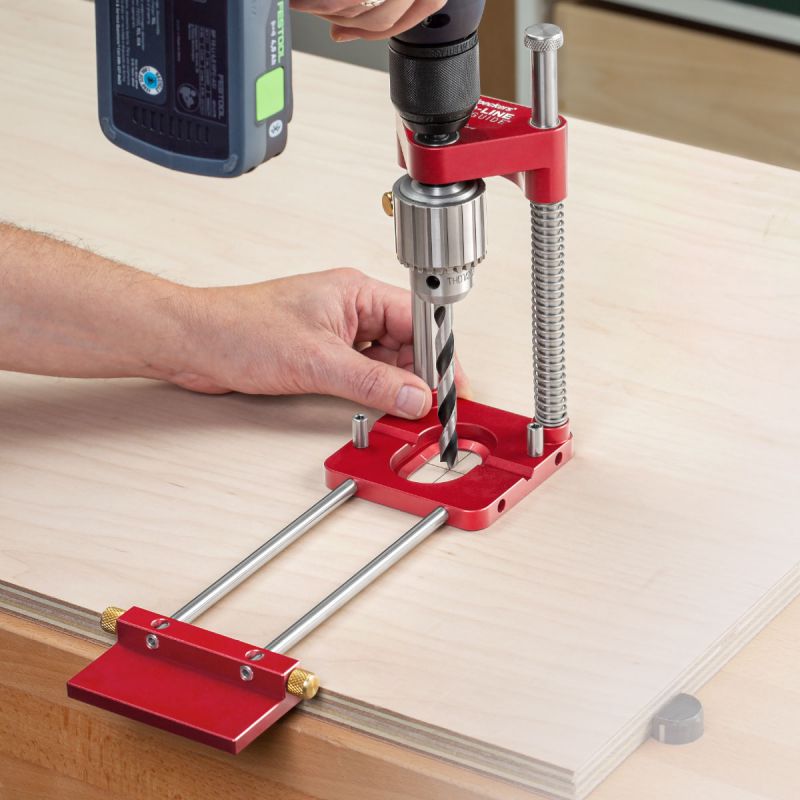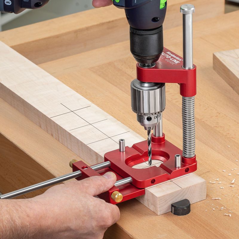 - There are those among us who can pick up a drill, place it on a workpiece and drill a straight hole. Then, there are the remaining 99.9% of us. A drill press solves the problem…as long as the piece you want to drill fits. But if you’re not one of the 0.1% and you want a straight hole in the middle of a large piece of plywood, or in an installed cabinet, or in anything you can’t get to your drill press (or you don’t have a drill press), you want to keep reading. Introducing Woodpeckers Auto-Line Drill Guide. This new tool keeps your drill bit perfectly perpendicular while you drill, but it goes further. We added a versatile base and fence system that makes it simple to keep your hole locations right on target.