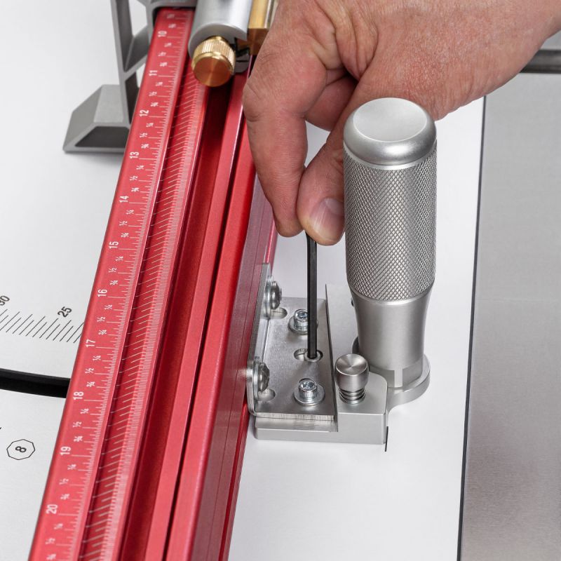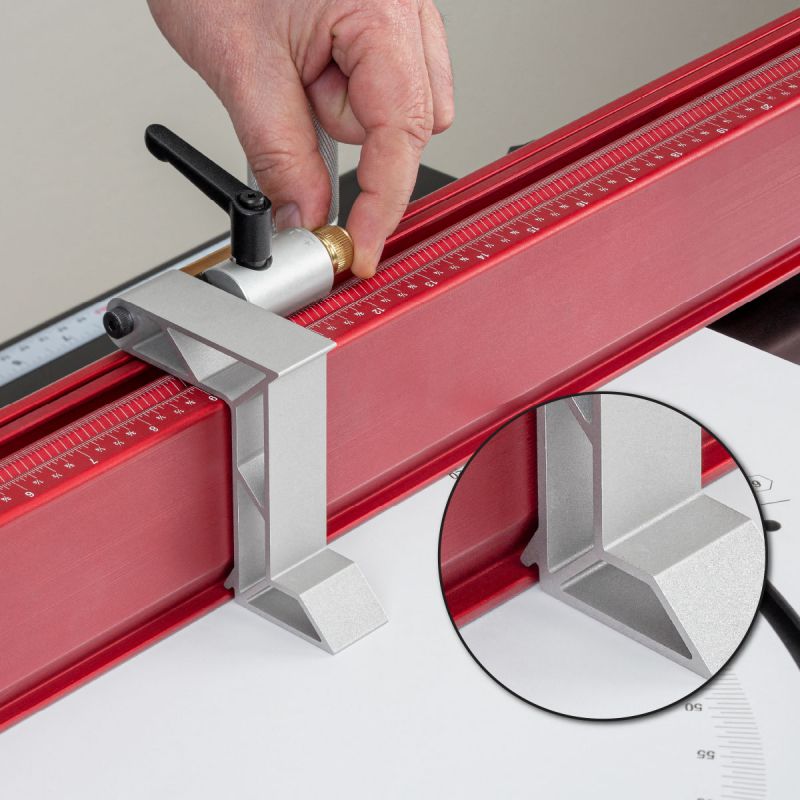 • Automatically adjusting fence pivot keeps the length scale correct at any angle setting.