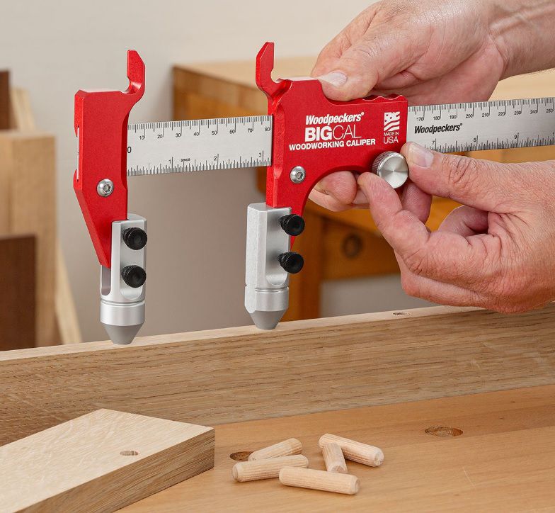- When you're looking for piston-fit accuracy, you need a tool that gives you precise inside and outside dimensions. Woodpeckers BigCal Woodworking Calipers do just that and more. Calipers are often used in metalworking, but most standard calipers max out at just 6" and are graduated to the thousandth of an inch. BigCal combines machinist-level accuracy and furniture-sized scale in a caliper designed for woodworking.