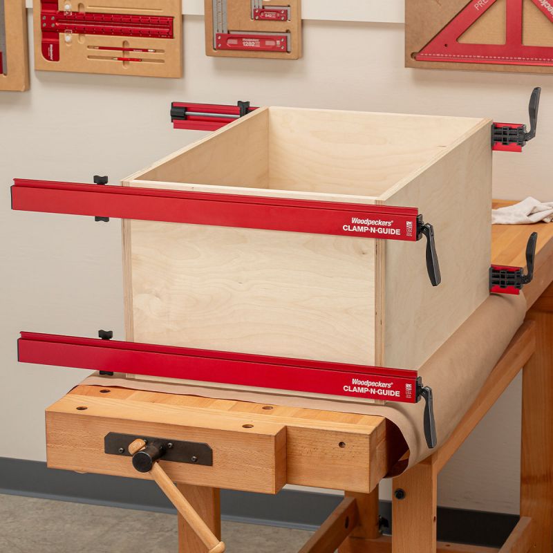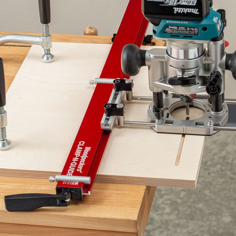 - Woodpeckers Clamp-N-Guide combines a straightedge with a clamp. Now, building a clamp into a straightedge isn't exactly a new idea, they've been around since the 80's. But what's new is a clamping handle that gives better leverage, a knurled steel clamp rod for a better grip and a low-friction anodized surface finish for smoother tool travel. Add to that a newly designed Router Adapter that works with almost every router ever made and you have Woodpeckers Clamp-N-Guide System.
