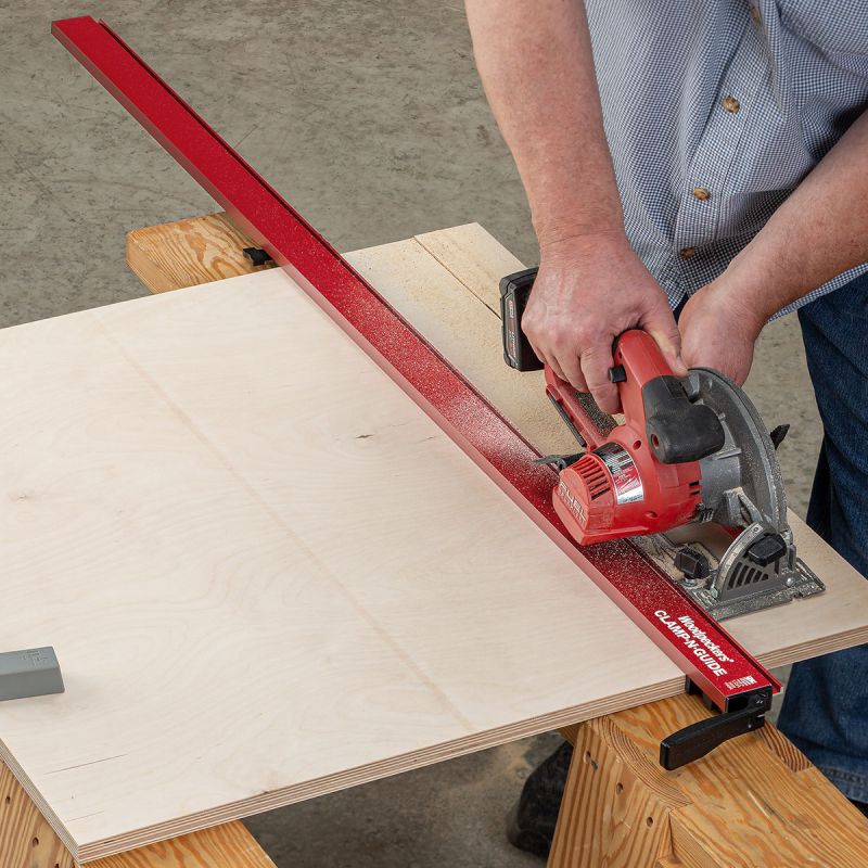 - However, you're not limited to using the Clamp-N-Guide with the Router Adapter. Use it to keep your circular saw right on line, just like the fancy track saws…but without the fancy price tag. It's perfect for the first few cuts on a sheet of plywood to get the sections the right size to finish on your table saw.
