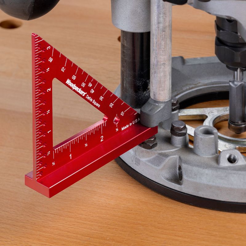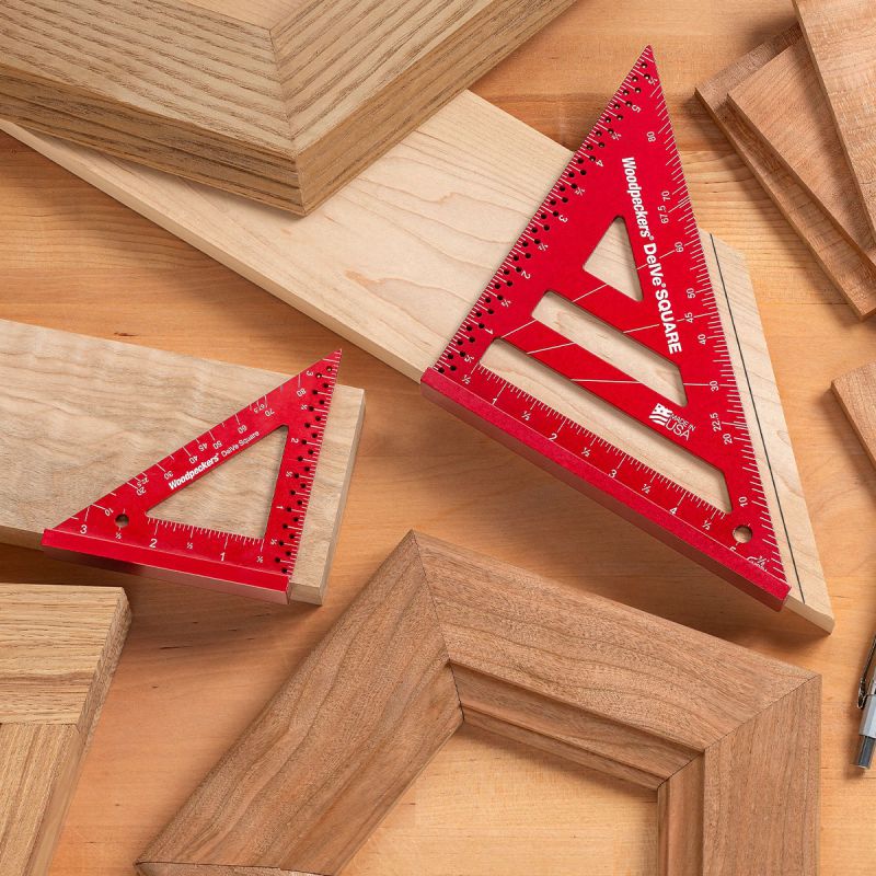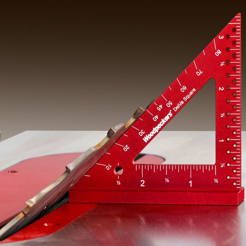- These are not just simply squares. In addition to the 45⁰ and 90⁰ edges, angles are graduated along the hypotenuse...in 1° increments on the 6" version and 5° increments on the 3.5". Both squares have additional graduations for octagonal layout at 22.5° and 67.5°. Woodpeckers Stair Gauge (sold separately) pairs well with the DelVe Square to lock in an angle and make repeatable marks where you need them.