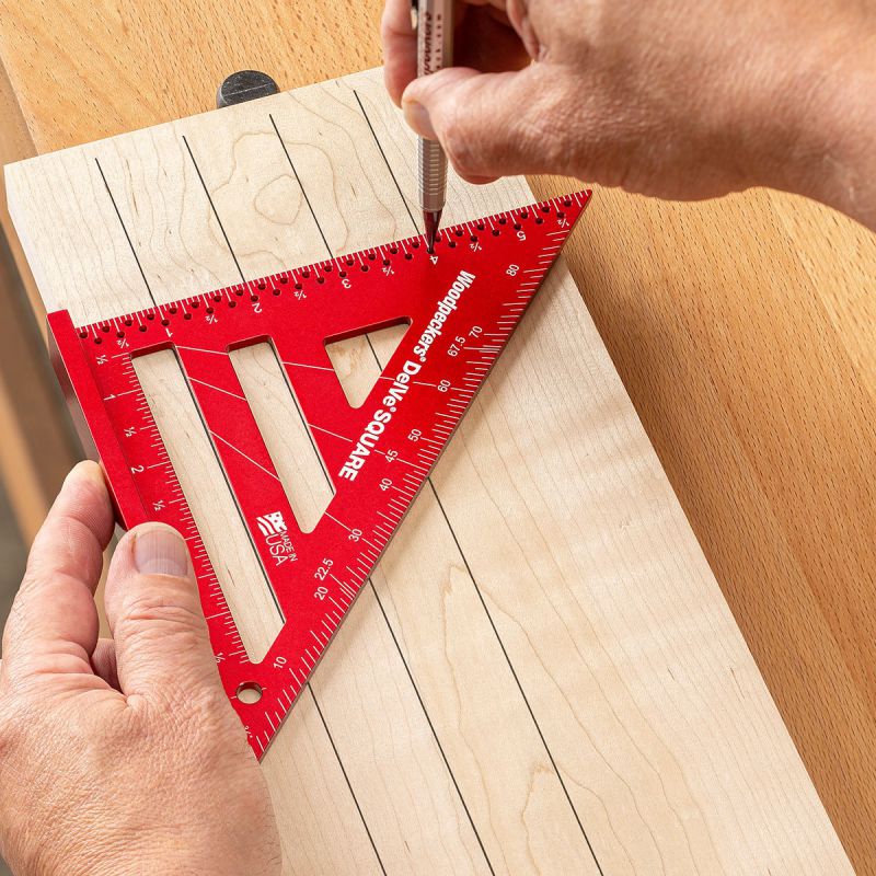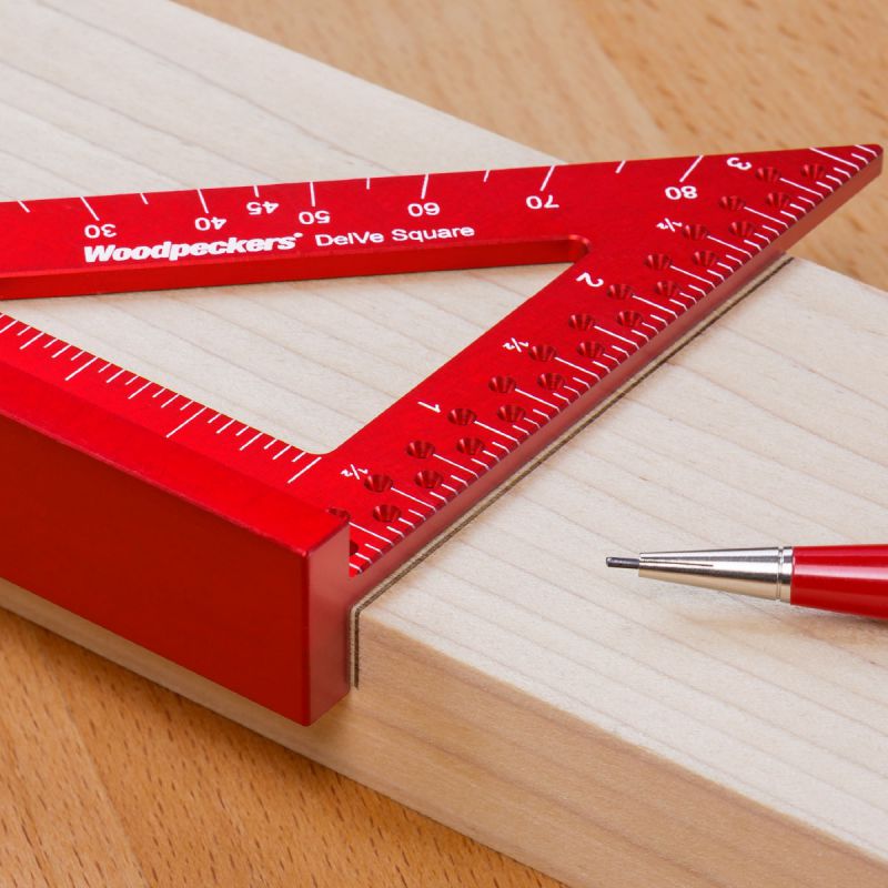 - Its versatility makes the DelVe a trusted companion for layout, assembly and installation. Scales on the blade are laser-engraved to an accuracy of ± 0.004" total accumulated error. Precisely machined scribing guides on 1/8" centers enable you to strike lines parallel to the edge of your stock quickly and accurately. And the squareness of the DelVe is held to Woodpeckers stringent standard of ±.0085°.