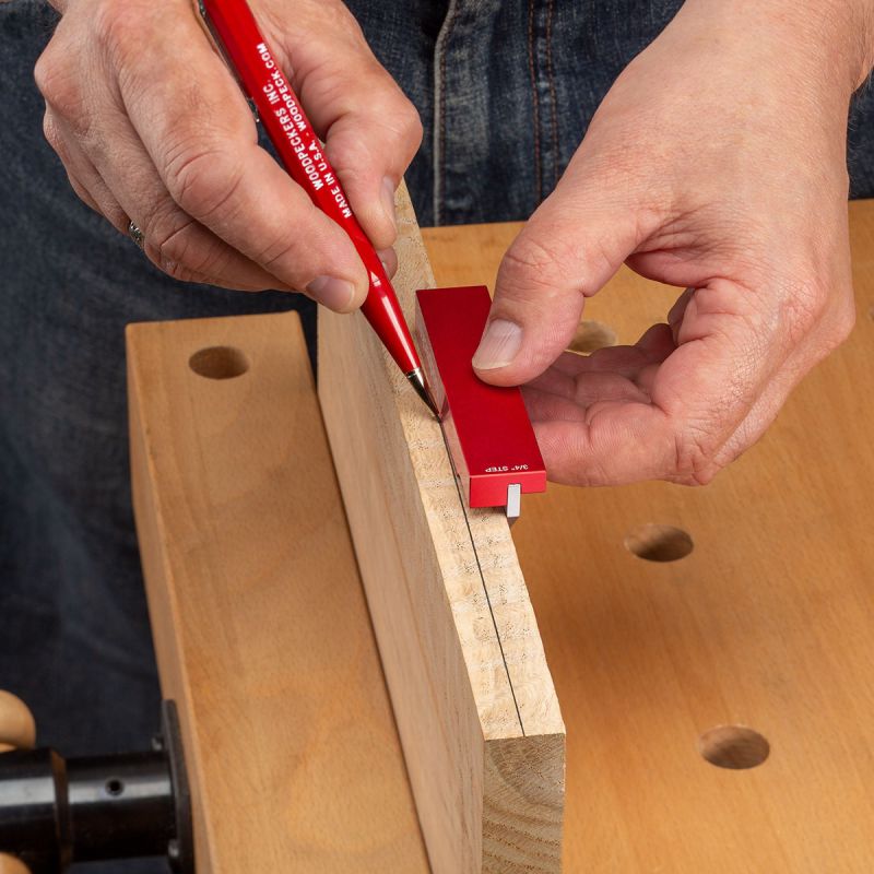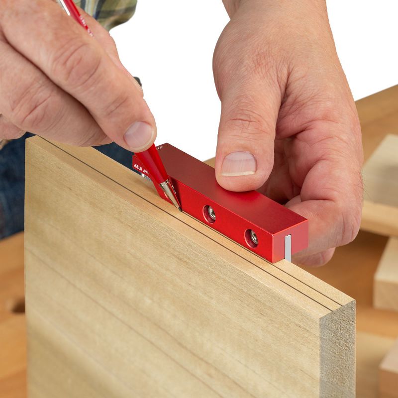 - The most unique feature of the DelVe Squares is easy to overlook, but invaluable once you’ve found it. One side of the base is 1/4" from the blade and the other is 3/8". Mark from the 1/4" side on both edges of 3/4" stock and you’ve just laid out a perfectly centered mortise or tenon. Use the 3/8" side to locate center of 3/4" stock for joinery lay out or hardware installation. The 3/8" side also makes it simple to mark the face and edge of your stock at the same time at exactly the same point.