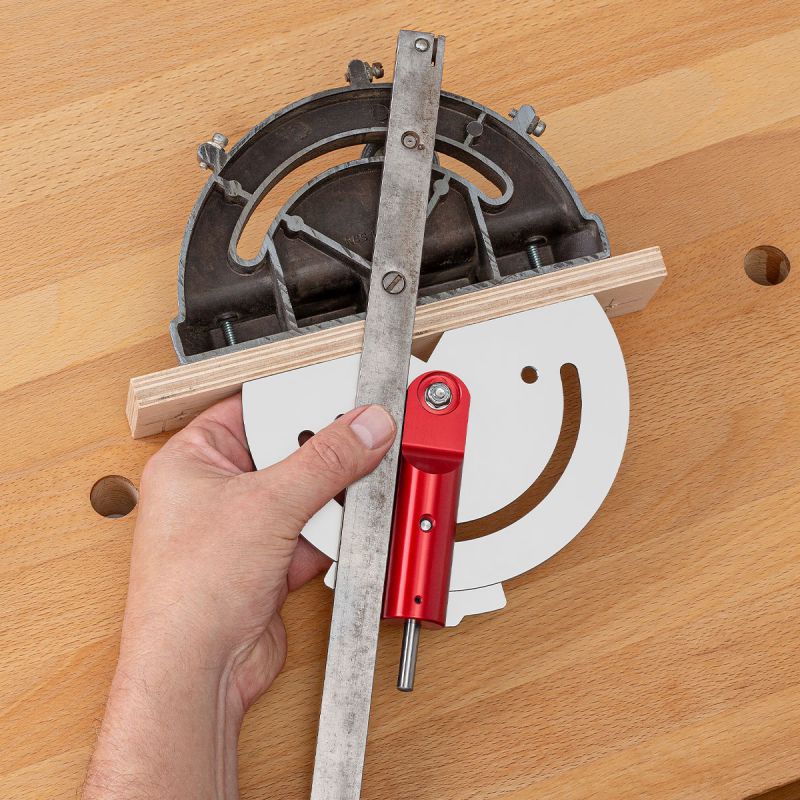 - Don't get boxed in by the name. While we called this the Drill Press Protractor, that's really just the beginning of this tool. For instance, miter gauge scales are notoriously inaccurate. You can set any angle perfectly on your miter gauge by setting the angle on your DPP, then aligning the shaft to the miter bar and the DPP base to the face of the miter gauge.