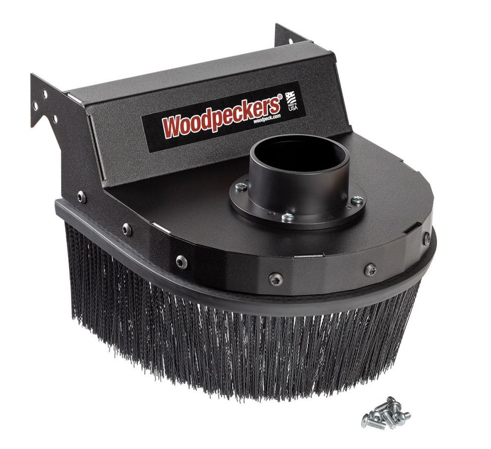 - Our new optional dust collection port bolts to the carriage and rides along right beside the exit point of the shavings. It works with either shop vacuums or larger dust collectors. A brush surrounds the pick-up area, trapping the shavings equally well on smooth or uneven slab surfaces. Mounts to the carriage with 6 simple screws, replacing the carriage end-stops. This will retro-fit to any Woodpeckers Slab Flattening Mill, regardless of when you bought it.