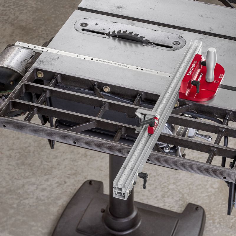 - If you’re through chasing square cuts with your current miter gauge, Woodpeckers Exact-90 is the perfect solution for your shop. More cross-cut capacity, more fence extension, a patent pending, adjustment-free miter bar, improved support for extra-wide stock and Dead. Square. Cuts.