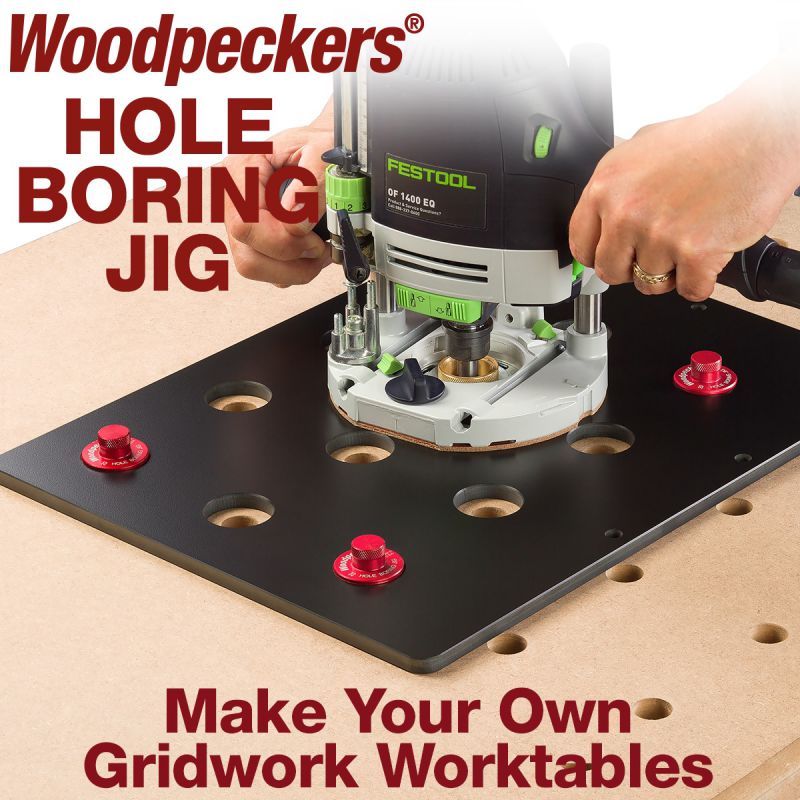 - With Woodpeckers Hole Boring Jig, you can make your own gridwork top, right in your shop, for a fraction of the cost of a ready-made top. Whether you’re building a custom work table or replacing the top on something like a Festool MFT, you can mill the top with near-CNC accuracy with nothing fancier than a good router and a sharp bit.