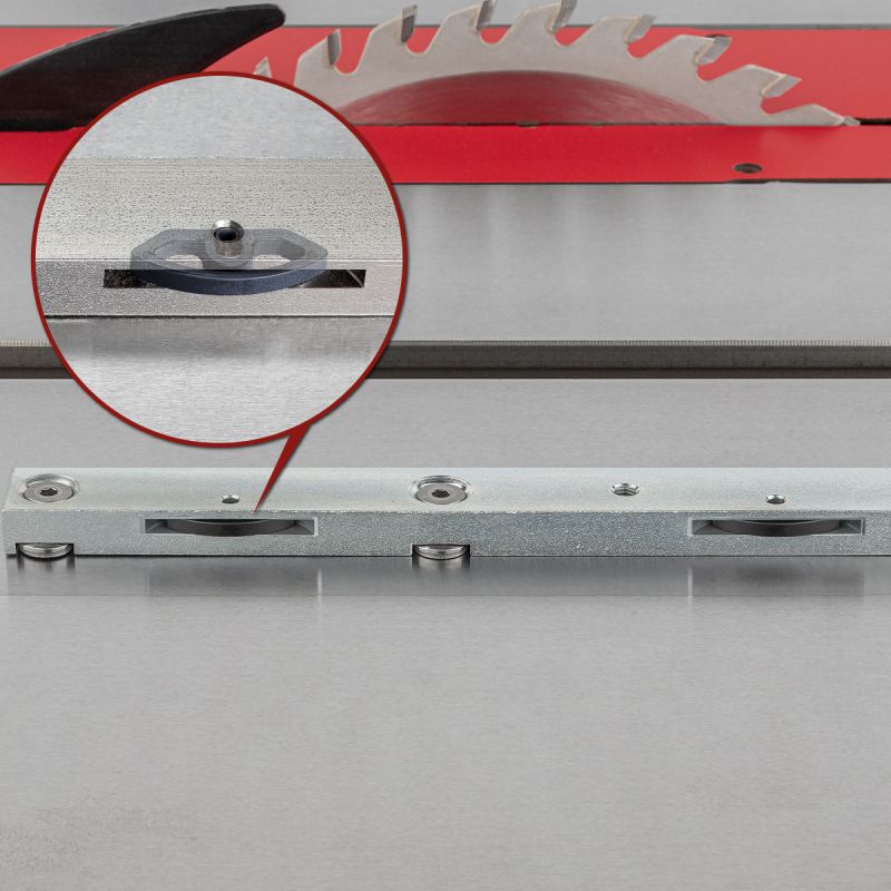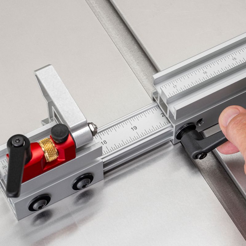 - Graduated Fence with Extension The heavily-ribbed extruded fence carries the stop out to 18" when closed or up to 31" when fully extended. When you need the fence extended, you don't have to go back to using a tape or rule. Just lock the stop on the "EXT" mark and set your dimension on the extension bar. You have your choice of inch or metric graduations on the fence.