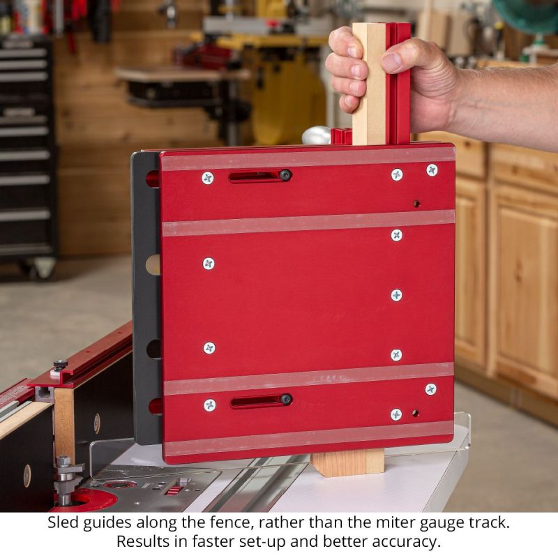 - Running the narrow end of a workpiece through a router table can be a stressful task. There just isn’t enough material to reach the outfeed fence before you leave the infeed fence. The bearing on the bit is only so much help…it needs two points of contact to keep the cut straight. That’s why you need an Iron-Grip Coping Sled for your router table when you’re making cope and stick door frames, bridle joints, tenons, half-laps and other end-of-board cuts.