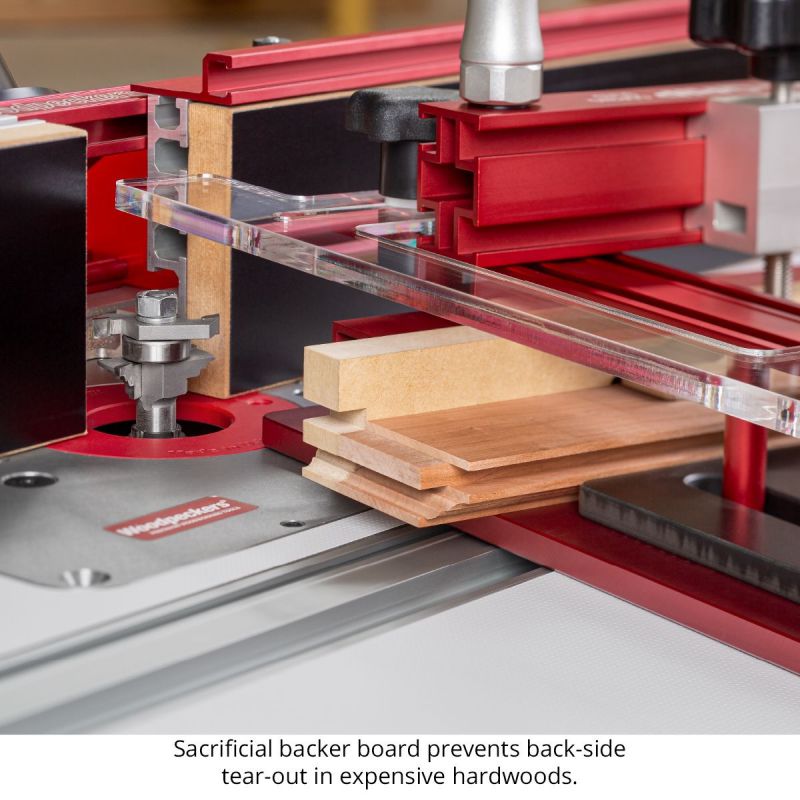 - The newly designed back fence has a T-slot to mount a sacrificial backer. The backer prevents blow-out where the router bit exits your stock. Just chop the end off and slide the piece forward when you change projects. You’ll get three MDF backer boards with your Iron-Grip. When they’re gone you can make your own from scraps or we offer them in convenient 3-packs.