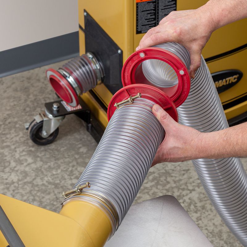 - Woodpeckers MagQuick Dust Ports use rare earth magnets to make swapping your dust collector hose a simple and painless task. By connecting the magnets to a steel ring (instead of magnets to magnets), you'll never have an issue with polarity alignment and you'll only have to buy one magnetic connector. We also designed an internal bevel at the point where the two fittings meet. The bevel guides the connection into proper alignment as the magnets pull the fittings together. On the outside of the fittings you'll find another bevel that slides into flexible hose without a struggle and a groove around the fitting so your hose clamp creates a perfect seal and will never slip. The 3 different robust fittings are injection-molded from high-strength ABS. The Collector-Side fitting has the magnets. The Inline Machine-Side fitting has a steel ring and connects hose to hose. The third fitting is a Surface-Mount adapter you can use to build customized collection ports.
