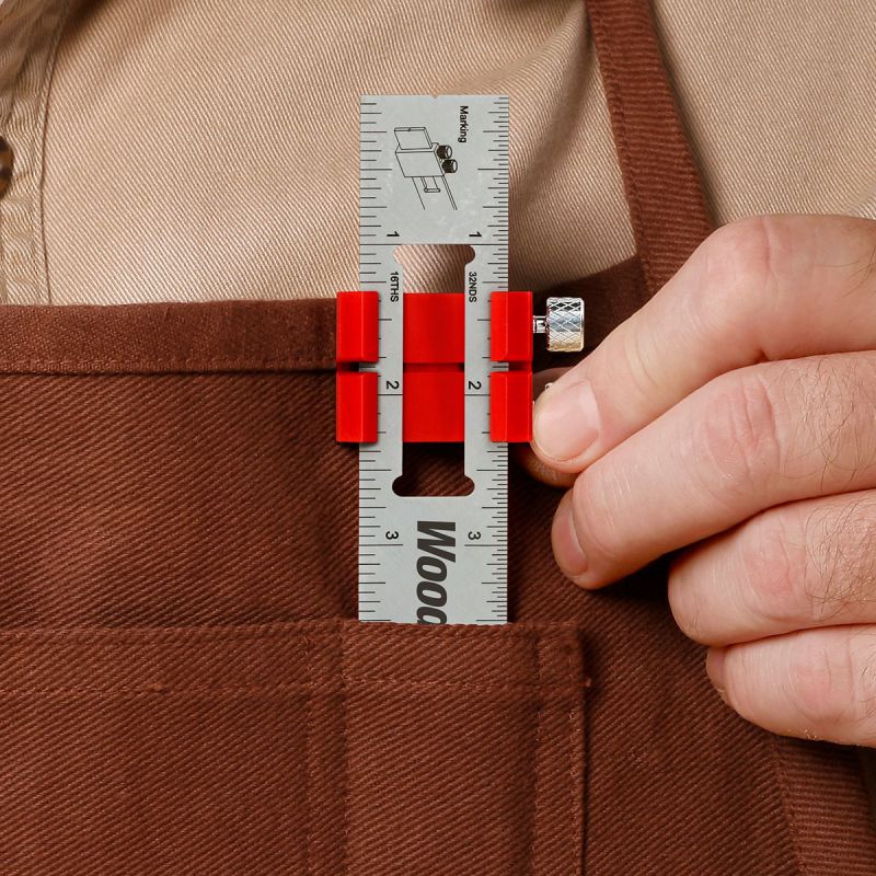 - Two material choices and three graduation options. The bright white laser engraved scales on the “Woodpecker Red” anodized surface make the original aluminum Paolini Pocket Rule one of the easiest-to-read rules on the market, as well as one of the lightest. If you prefer a thinner rule, go for the stainless steel version. Both are milled to a precise 1-inch width. The anodized aluminum rule is 1/8" thick and the stainless model is 1/16" thick. Both are available with your choice of inch-only, metric-only or inch-metric combo scales. Regardless of the material or graduation choice you make, you’ll love the clean, precise look of our state-of-the-art laser engraving, as will generations of woodworkers to come.
