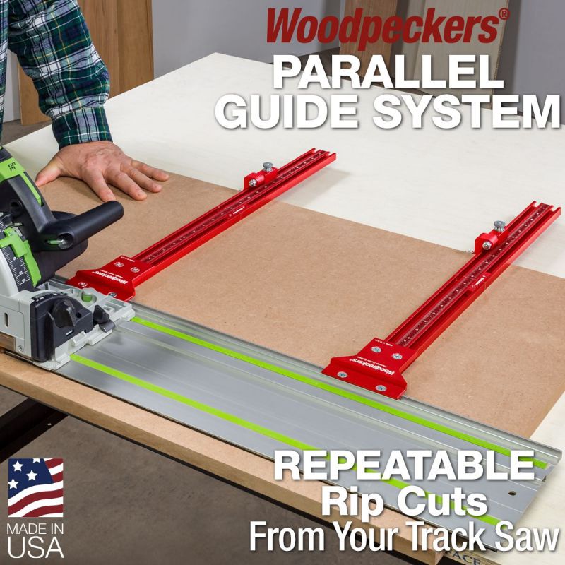 - Just like the rip fence on a table saw, Woodpeckers Parallel Guide System takes measuring and marking out of the equation and uses a physical reference to ensure your last cut is exactly the same as your first. The Parallel Guide System locks onto your Festool, Makita, Milwaukee or Triton guide rail and instantly aligns the cutting line parallel to, and a specific distance from, the edge of your stock.
