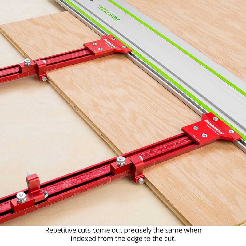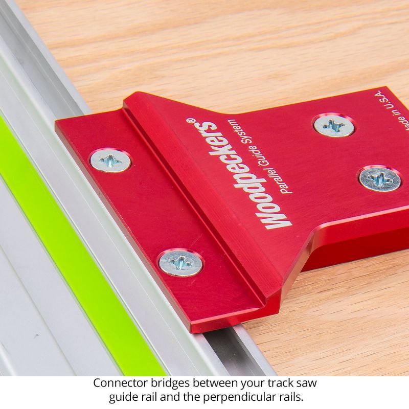 - The Parallel Guide System starts with Woodpeckers Dual Purpose Track. The T-track connects to your saw’s guide rail with a precision-machined bracket that locks in square and secure. With two T-tracks locked to your guide rail, all you have to do is set the zero side-play flip stops to the same dimension, position the stops on the edge of your work and make your cut. Repeat as often as needed…every piece will be exactly the same.