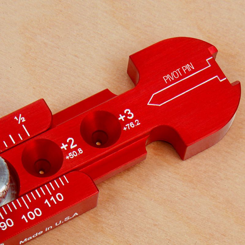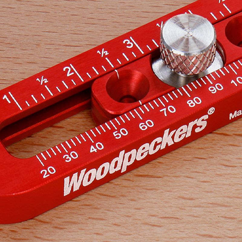 - We carefully machine the Pocket Compass on our state-of-the-art CNC mills, then anodize the surface in our familiar “Woodpecker Red” color. The anodizing isn’t just for looks. It protects the surface from corrosion and wear. Finally, we laser engrave both inch and metric graduations to an accuracy of ±.004" total accumulated error over the length of the scales.