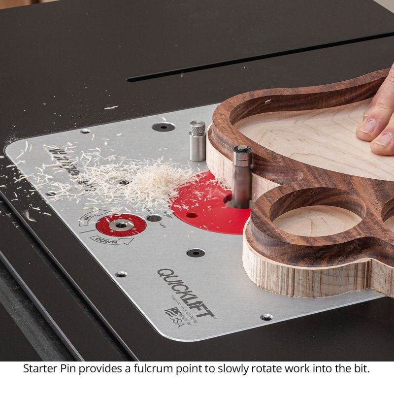 - Three locations are provided for the Starting Pin, allowing you to ease into cuts on contoured workpieces. The same threaded holes can be used to mount Woodpeckers Freehand Guard (sold separately).