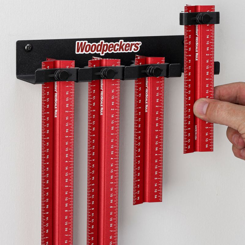 Woodpeckers Set of 4 HexScale Rules with Stops and Wall Rack