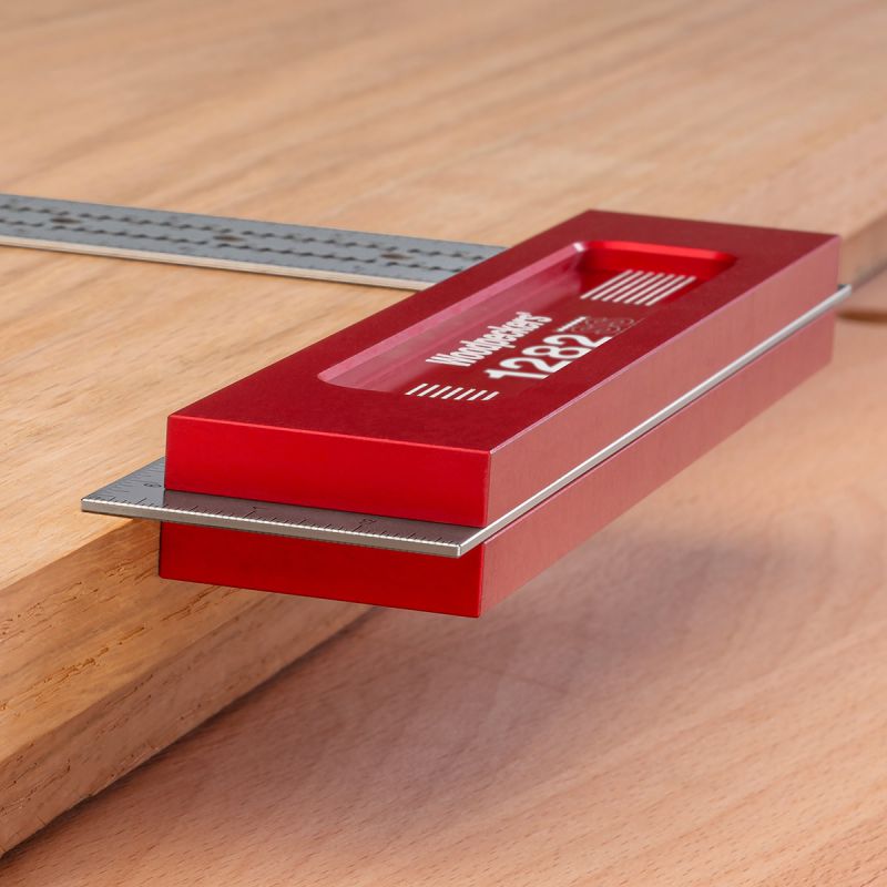 - Like our aluminum squares, the cheeks added to the central core are narrower, forming a shoulder that keeps your square registered to your stock even when you let go. You’ll love using our new stainless-steel squares for lay out work. The thin blade puts the scale right next to your stock, reducing parallax error. When you need a mark parallel with an edge, just drop a pencil into the correct scribing guide and slide the square along the edge of your stock. The scribing guides are shaped to accommodate almost any marking tool you favor, not just mechanical pencils.