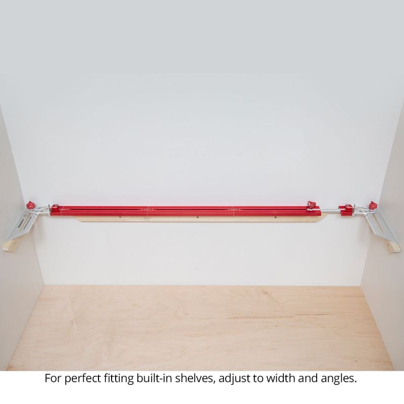 - One end has a sliding connector (you can put it on whichever end you prefer). This lets you adjust the length of the gauge right into the opening for the shelf or stair tread. Slide the beam out until both ends are against the walls, adjust the two ends to match the wall angle, lock it up and you have your perfect instant template.