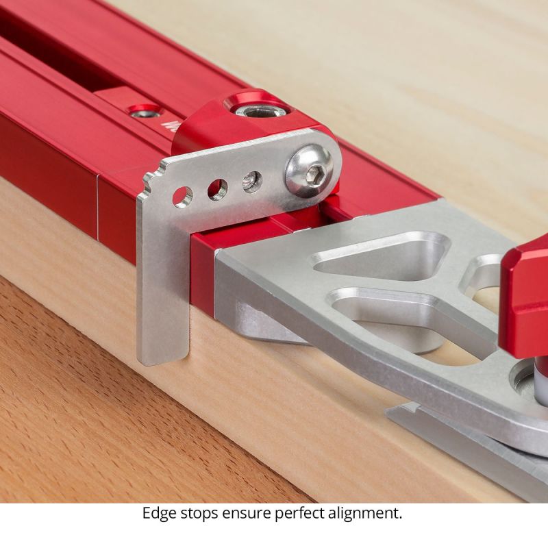 - The adjustable bevels at the ends of the Stair Tread & Shelf Gauge are machined from aircraft-grade aluminum on our CNC milling centers. Then clear anodized for protection and to reduce friction. The extruded beam sections are also anodized, but in our familiar “Woodpeckers Red” color.