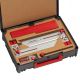 - The Stair Tread & Shelf Gauge comes complete with (4) 12" sections of beam, (1) 6" section of beam, two adjustable bevel ends, two edge flip-stops and all the necessary connecting bars and knobs.