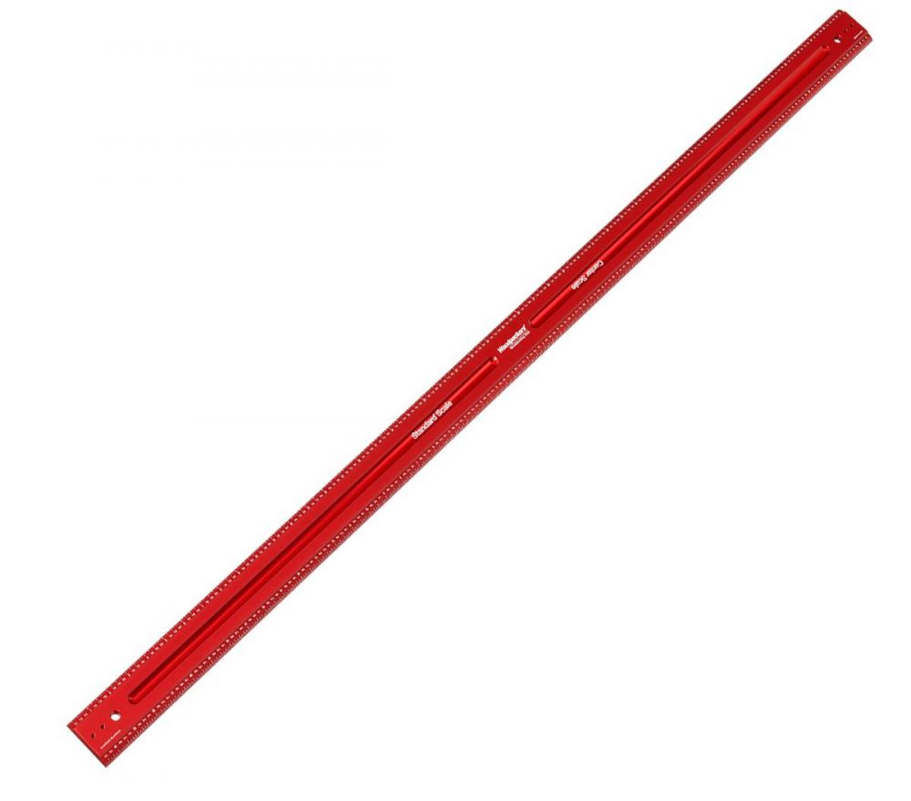 - Each Woodworking Rule is machined from aircraft-grade aluminum and anodized for surface protection and appearance. Both edges of the rule are beveled 30° to reduce parallax error. The bright white laser-engraved scales have great contrast against the red anodized surface. Finger grooves are machined into the middle of the body to help position the rule. On the backside, there’s a relieved section in the middle to keep the edges lying perfectly flat on your work.
