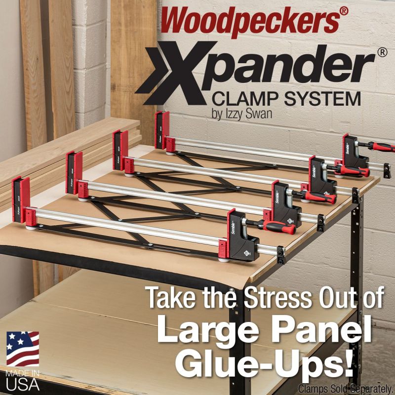 - Working with your clamps held in an Xpander system makes everything about your glue-up go smoother. The clamps are locked vertically, so they won’t fall over if you bump them. The clamping heads adjust easily along the rail, since the bar is held in place. As mentioned before, spacing between the clamps is automatic. And, the clamps are elevated off the work surface, simplifying the application of clamping cauls or Woodpeckers Joint Bridges.