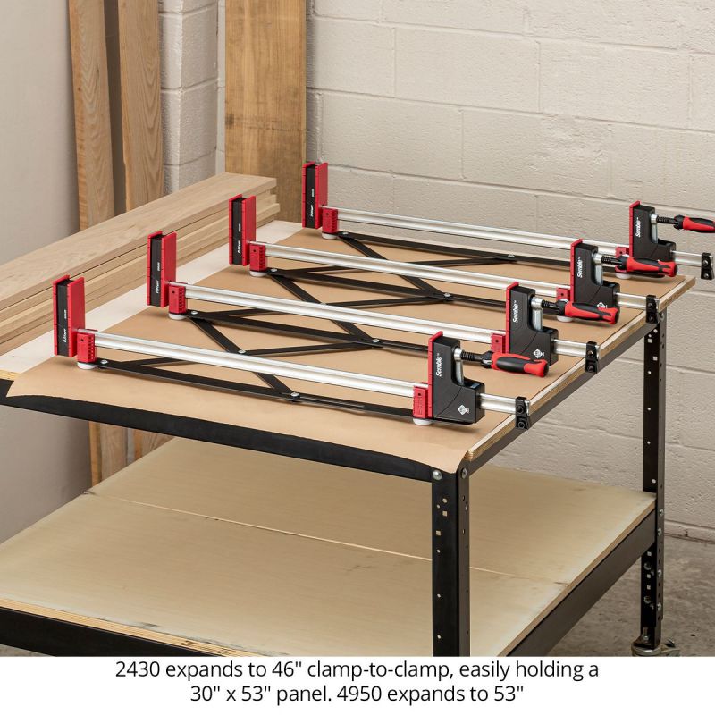 - The larger 4050 Xpander accommodates 40" to 50" clamps. The smaller 2430 Xpander handles 24" to 40" clamps. The 4050 expands to 53" from edge to edge, allowing you to glue up panels up to 60" long. The 2430 expands to 46" edge to edge, letting you glue up panels 53" long.