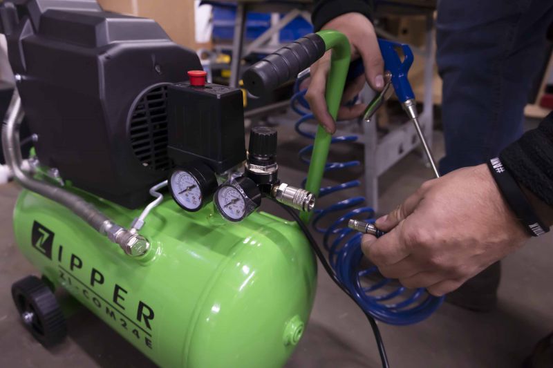 Designed for the home user for light and light occasional use, the Zipper COM24E is an affordable air compressor that combines performance and safety in the one unit. It features a powerful 1100 W motor, 24 litre air receiver, 8 bar maximum operating pressure, and has a 165 L/min air flow intake with sufficient power to operate a variety of tools.