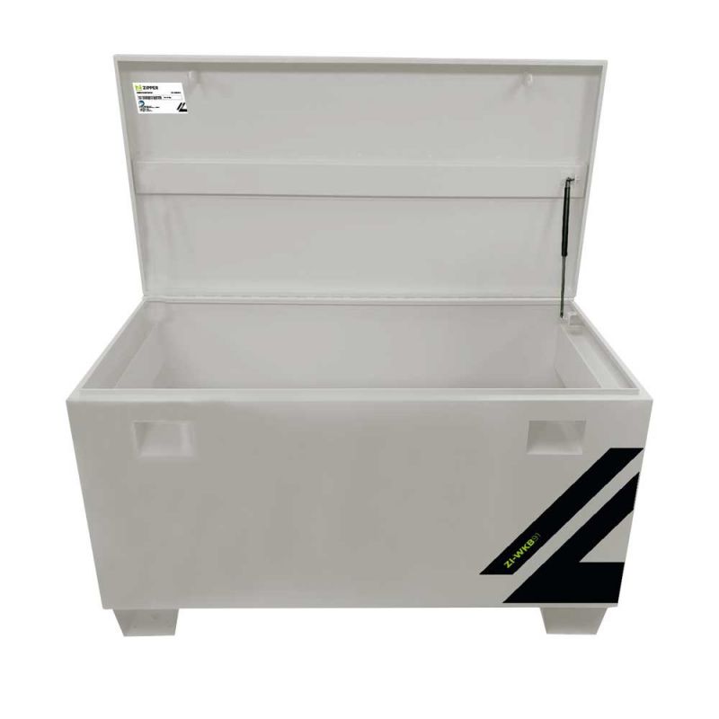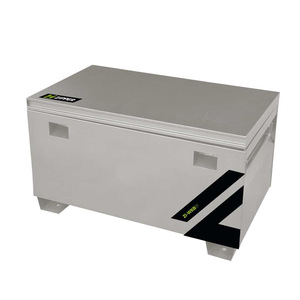 The ZIPPER tool box ZI-WKB91 made of metal and powder-coated RAL9006 paint is multifunctional. Perfect for storing your tools and equipment. It can be transported by pallet truck thanks to the metal feet or by one or two people using the robust handles. Stackable and can also be used on your transporter/pickup truck by attaching it to the loading area by means of the feet (mounting material and drill holes must be adapted and provided by yourself)